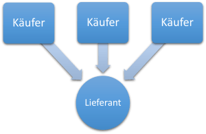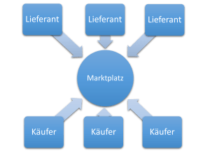 Many-to-Many-Systeme in Form von elektronischen Marktplätzen. Beim Marktplatz-Ansatz stellt eine dritte Partei das System zur Verfügung und verlangt dafür Gebühren. Käufer und Lieferant müssen sich dann an dieses System anbinden. Da den Marktplatz mehrere Teilnehmer nutzen, sinken die Kosten und der Käufer kann die Preise der Lieferanten vergleichen.