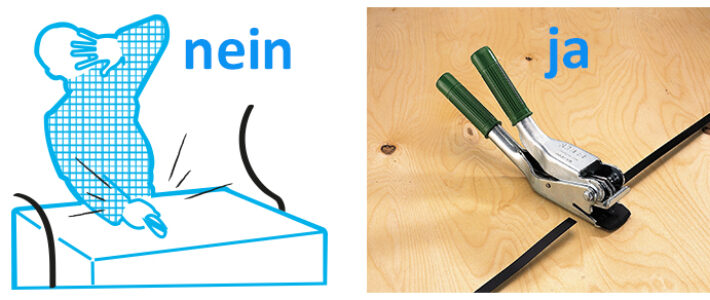 Im Verpackungsbereich gilt natürlich: Alles was für Transport oder Lagerung verschlossen, verpackt und gesichert wurde, muss irgendwann wieder geöffnet, ausgepackt und entsichert werden. Wann immer bei diesen Vorgängen zur „falschen“ Schere gegriffen wird, besteht ein potentielles Sicherheitsrisiko. Ganz besonders heikel: Das Durchtrennen von Stahlband! Das meist scharfkantige Band steht, richtig angewendet, unter einer nicht zu unterschätzenden Spannung. Wird das Band zertrennt, stellen zurückschnellende Enden ein hohes Sicherheitsrisiko dar! Die Sicherheitsschere Tymer hält daher beim Schneiden das Stahlband fest und „lässt nur langsam los“. So ermöglicht diese Spezialschere das mühelose und sichere Schneiden von Stahlband bis zu einer Breite von 35 Millimetern Breite und einer Stärke von bis zu 0,9 Millimetern.